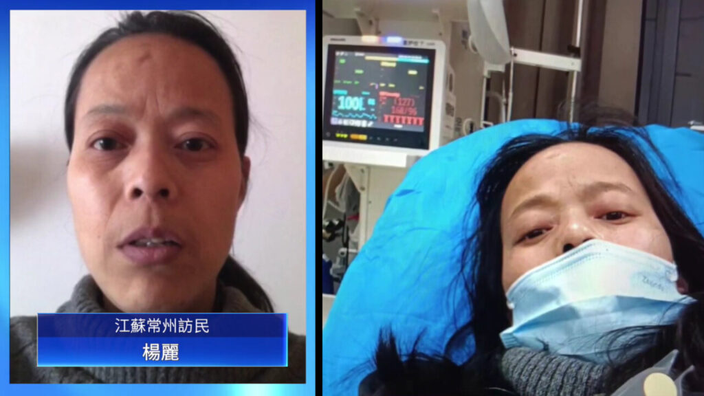 江蘇省出身の陳情民、楊麗さんの場合。彼女は今月7日(陳情ではなく)持病の腎臓病の治療のため北京へ行った。ところが、現地当局が派遣する陳情阻止要員によって、意識を失うほど激しい暴力を受け、さらに強制的に地元へ連れ戻された。
