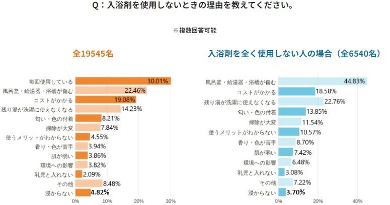 コスト面を気にするひとはそれほど多くはなかったため、普段全く入浴剤を使用しないというひとでも、“お風呂が傷む”問題が解決すれば、入浴剤を積極的に使用するようになるのかもしれません。