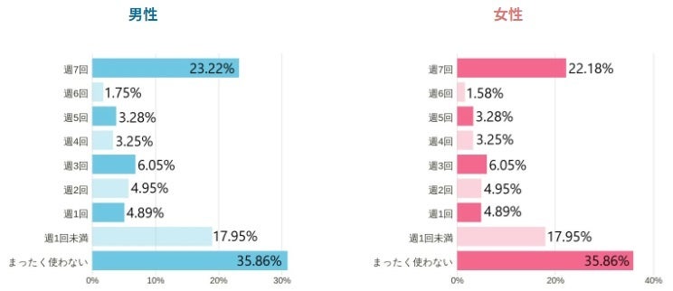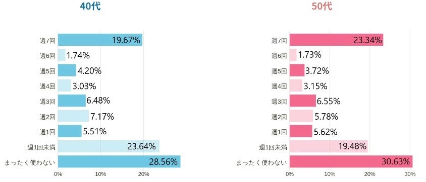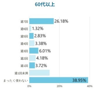 ただ、まったく使わないという割合も年代が上がるごとに増え、20代以下が27.11%なのに対し60代以上は38.95%と、12%もの開きが出ています。