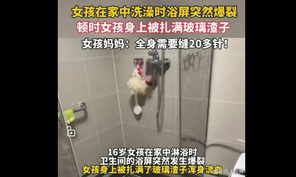 今月6日、黒竜江省ハルビン市に住む16歳の少女が自宅で入浴中、浴室のガラス製の扉が突然砕け散る事故が起きた。辺りに飛び散ったガラスが少女の全身に刺さり、少女は20針以上縫う怪我を負った。