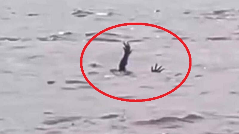 「水面から見え隠れるする手」人が溺れそうになって必死にもがいているかのように見えたシーン。