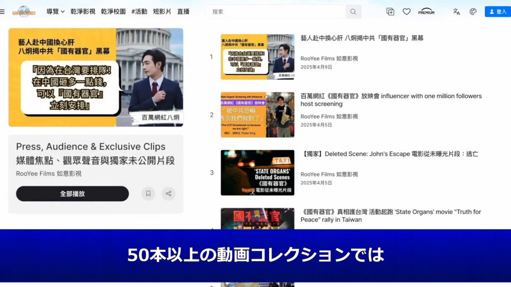 50本以上の動画コレクションでは、中国共産党による臓器強制摘出の実態に触れた人々の衝撃と深い考察がまとめられている。