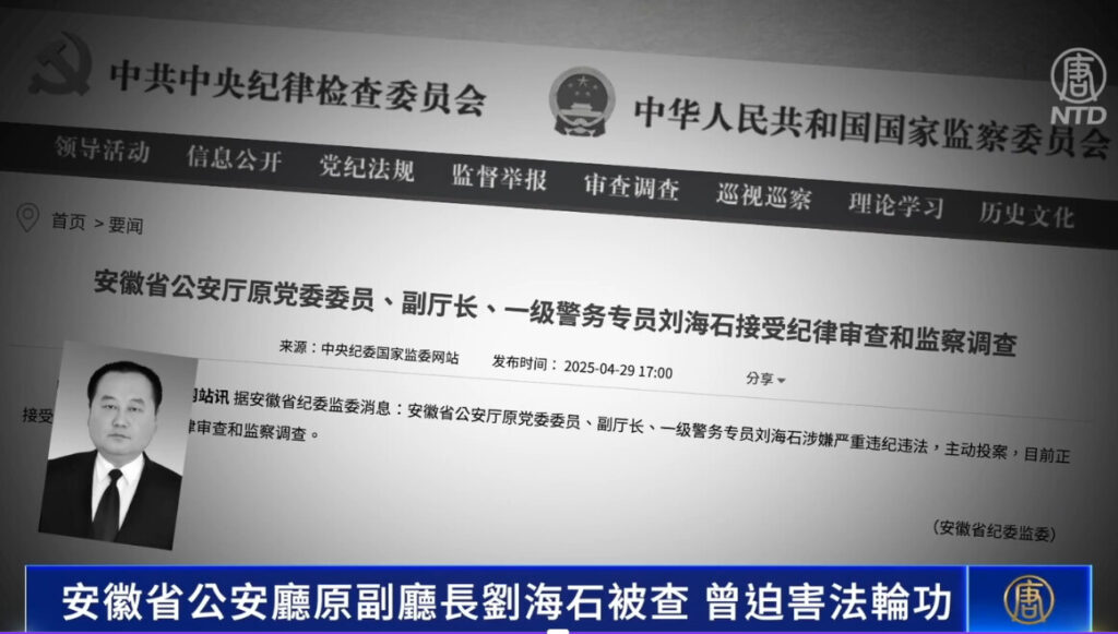 中国当局は、安徽省公安庁の元副庁長である劉海石に対し、「重大な規律違反と違法行為」の疑いで調査を開始したと発表した。
