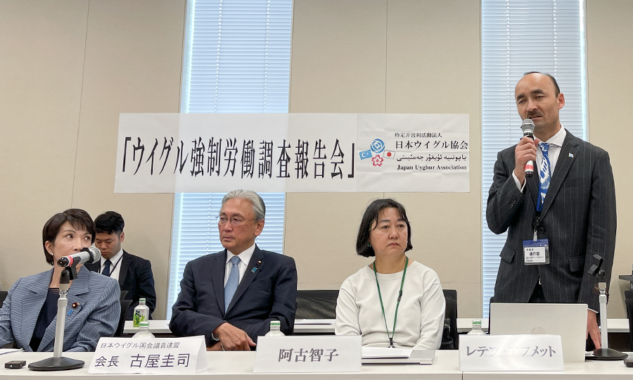 記者会見には、日本ウイグル協会のレテプ・アフメット会長やHRNの伊藤和子副理事長、自民党の高市早苗前経済安全保障担当相、古屋圭司元国家公安委員長らが出席した。