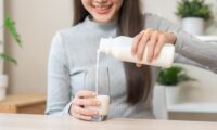 3. 順番に間違いがないように注意しながら、温めたライスミルクをフルーツと野菜のジュースの混合物にゆっくりと注ぎます。