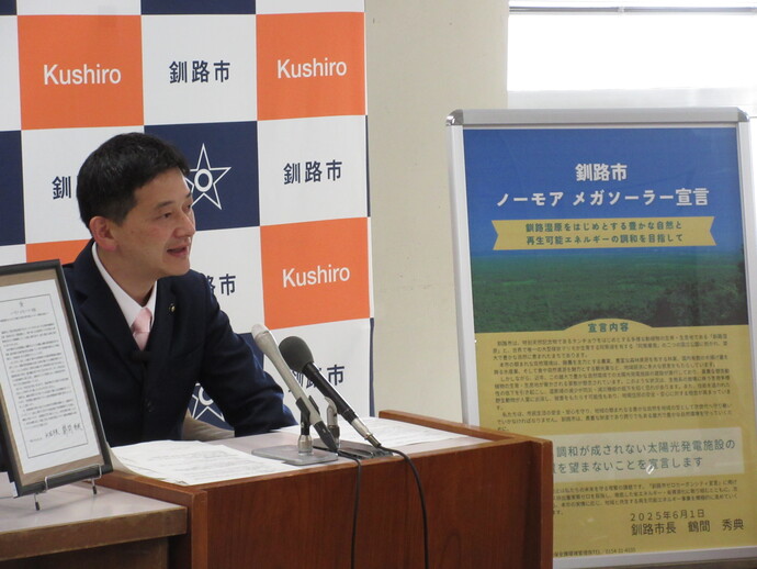 北海道釧路市は、太陽光発電施設、いわゆるメガソーラーの設置について、市としての意思を示すため、「ノーモア メガソーラー宣言」を発表した。これは、釧路湿原をはじめとする市内の豊かな自然環境や、希少な動植物の生息地を守ることと再生可能エネルギーの調和を目的としている。鶴間秀典市長は2025年5月30日の定例市長記者懇談会で、「自然環境と調和が成されない太陽光発電施設の設置を望まない」と明言し、市の方針を明確に示した。