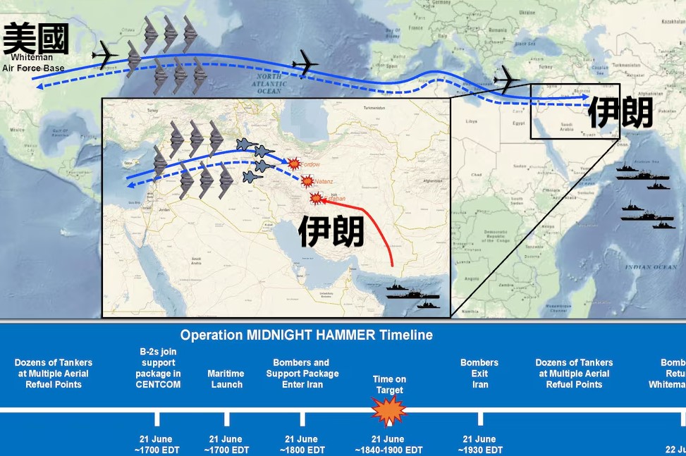 世界が太平洋上空に注目していた隙に、アメリカ空軍はすでに爆撃任務を完了し、フォルドゥ核施設には12発のMOPを投下、さらにトマホーク巡航ミサイル30発を発射してナタンズおよびイスファハンの核施設を破壊した。全ての作戦機は無傷で帰還し、損失は一切報告されていない。この作戦は、現代戦の次元を超えた一撃であった。
