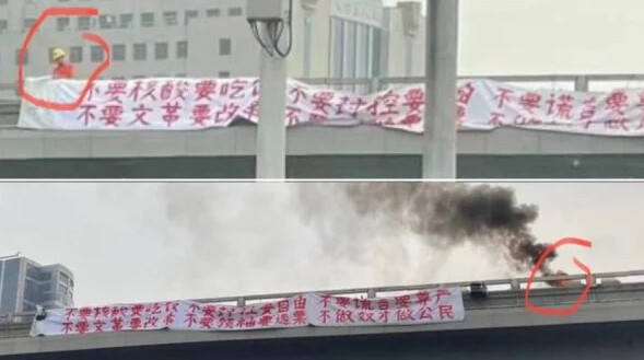 横断幕には、「PCR検査より食事を」「封鎖ではなく自由を」「嘘ではなく尊厳を」「文革ではなく改革を」「指導者ではなく選挙を」「奴隷ではなく公民を」、そして「独裁の国賊 習近平を罷免せよ」など、現代中国人の切実な叫びが記されていた。