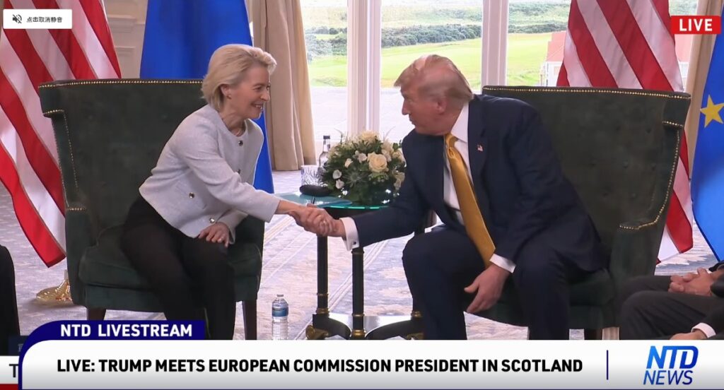 アメリカのトランプ大統領は27日、イギリス・スコットランドで欧州連合(EU)のフォンデアライエン欧州委員長と会談し、これまで30%へ引き上げるとしていたEUからの輸入品にかける関税を15%に抑えることで合意したと明らかにした。トランプ大統領はこの合意について、「史上最大ともいえる歴史的な取引」と述べ、成果を強調した。
