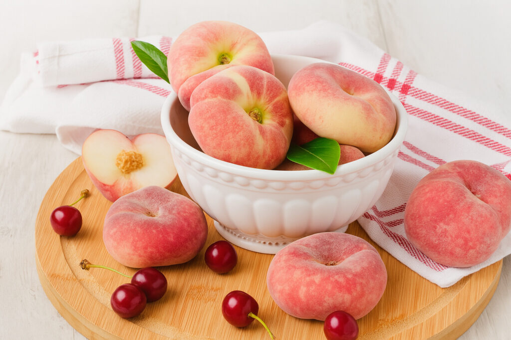 もも: みずみずしくて甘いももは、血の流れをよくし、体に潤いを与える果物。のどの渇きや便秘、血行不良が気になる人に向いています。体をなめらかに整え、新陳代謝をサポートします。