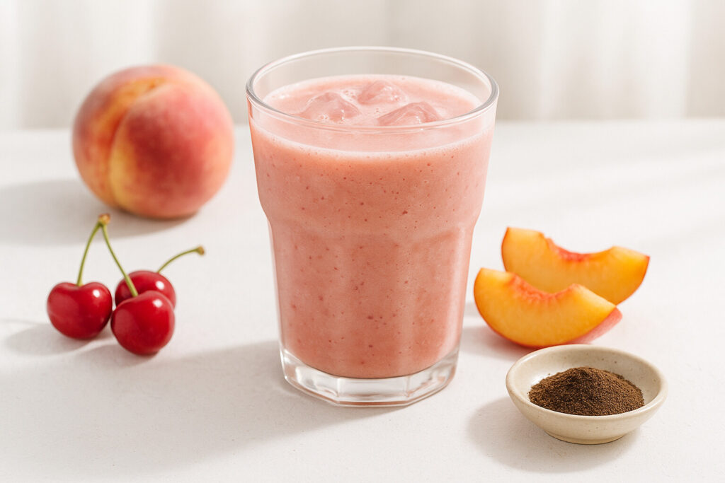 さくらんぼとももを、ジュース・ヨーグルトカップ・ゼリーの3通りで楽しめる、夏にうれしい簡単レシピです。冷たくても、体にやさしい組み合わせで、暑い季節の栄養補給にぴったり。