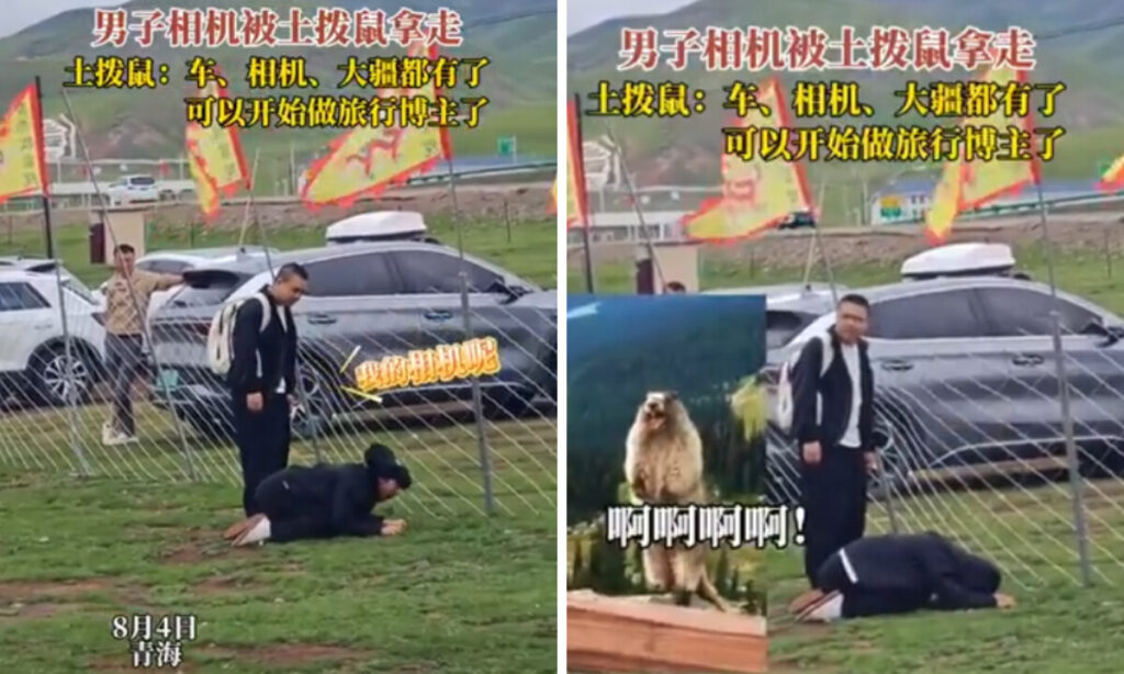 (高価なカメラを奪われ、「おい、マーモット逃げるな!カメラ返せ!」と絶叫する若者。2025年8月4日)