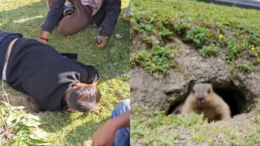 (観光客の車の鍵を堂々とくわえ、穴へ逃げ込んだマーモットを地元村民が総出で捜索。2025年8月2日)