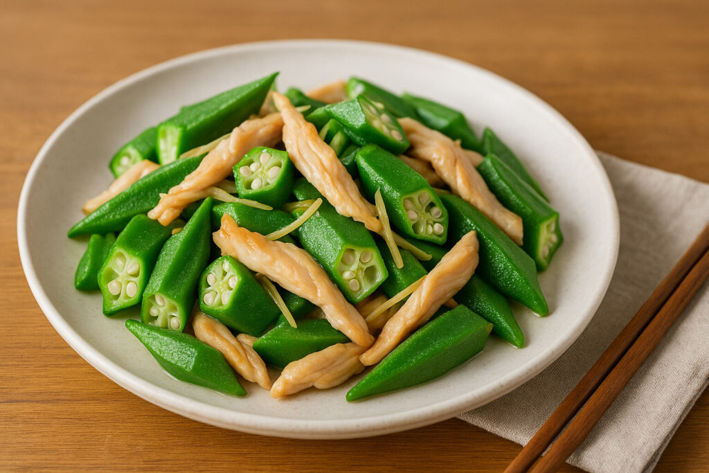 養生レシピ:オクラと鶏むね肉炒め