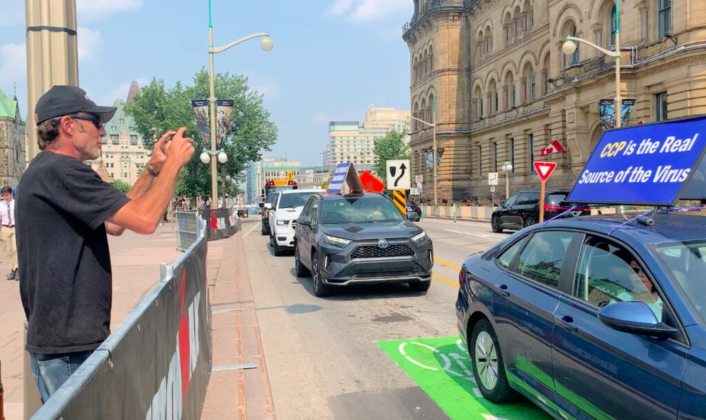 カナダのオタワにある国会議事堂前で、ある市民が「中国共産党がウイルスの発生源だ」と書かれた看板の写真を撮り、「全く同感です」と述べた。(大紀元)