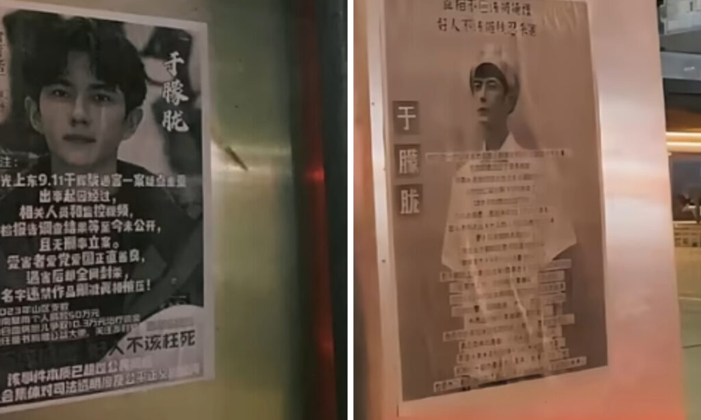 中国国内での真相追及の動きの一つ。市民が自作した于朦朧のポスターを各地に掲示し、再調査を訴えている。(画像=中国SNSより)