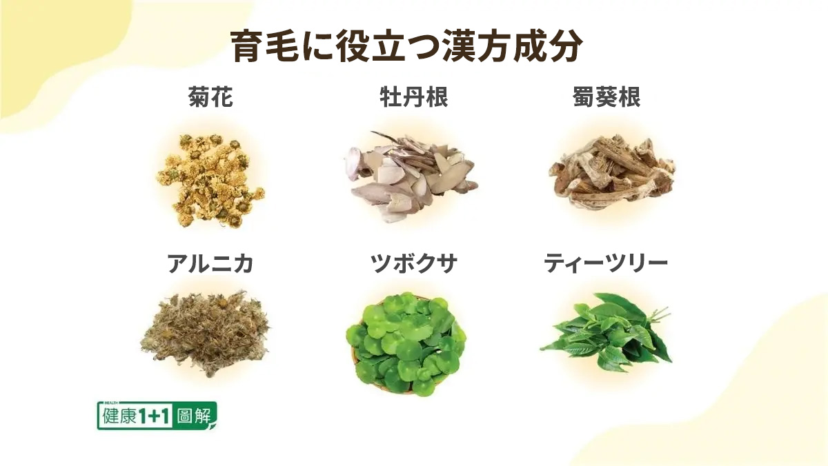 洗髪後は髪を5割ほど乾かしてから育毛液を塗布します。顔のパックと同じように頭皮にも栄養を与えるイメージです。陳医師はノコギリヤシを含む育毛製品を選ぶよう提案しています。研究によれば、ノコギリヤシは毛髪の再生を促す可能性があると示されています。そのほか、菊花、牡丹根、蜀葵根(しょくきこん)、アルニカ、ツボクサ、ティーツリーなども、優れた育毛成分であると言われています。