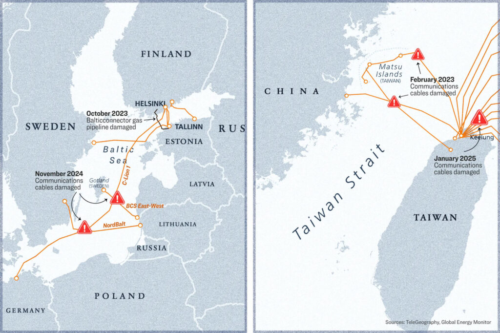 過去2年間だけを見ても、数多くのケーブル切断事案が中国の関与によるものだと指摘されている。その中には、台湾の通信ケーブルの重大な損傷、バルト海の通信線被害、そしてフィンランドとエストニアを結ぶガスパイプラインおよび近接する2本の光ファイバーケーブルの破壊も含まれている。