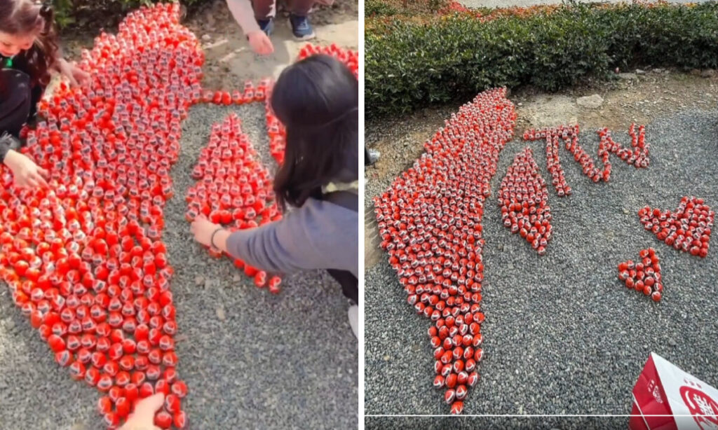 映像には、達磨を並べてつくられた 「台湾の島の形」や台湾(Taiwan)のイニシャル「TW」の文字、そしてハートマークのアート作品を、女性が強引に崩していく姿 が記録されていた。
