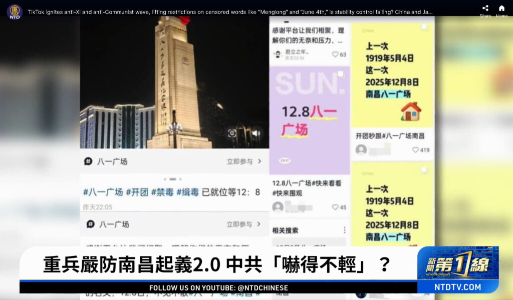 江西省南昌市では、「12月8日、八一広場に行こう」「封印制度のことを話そう」という数行の軽い投稿に当局が過剰反応し、大学の外出禁止や広場封鎖まで行った。