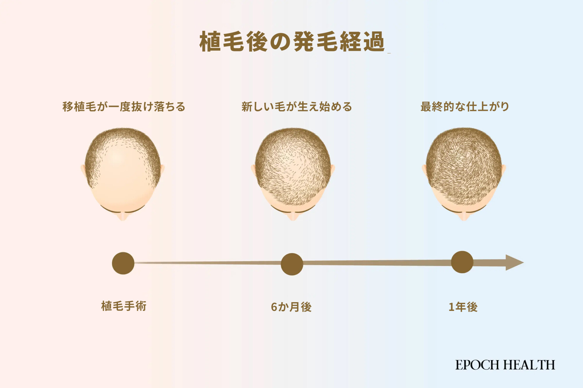 アメリカ皮膚科学会によると、多くの患者は移植後6~9か月頃から、髪の密度が目に見えて改善していくのを感じ始めます。新しい髪は一斉に生えるのではなく、徐々に生え揃っていきます。