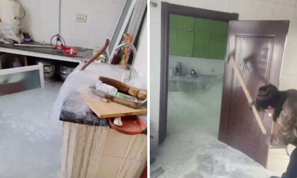 ある家庭が外出する際、水道の蛇口を閉め忘れた。よくある、誰にでも起こりそうなうっかりミスだ。ところが帰宅してドアを開けた瞬間、待っていたのは水浸しの部屋ではなく、家全体が凍りついた異様な光景だった。