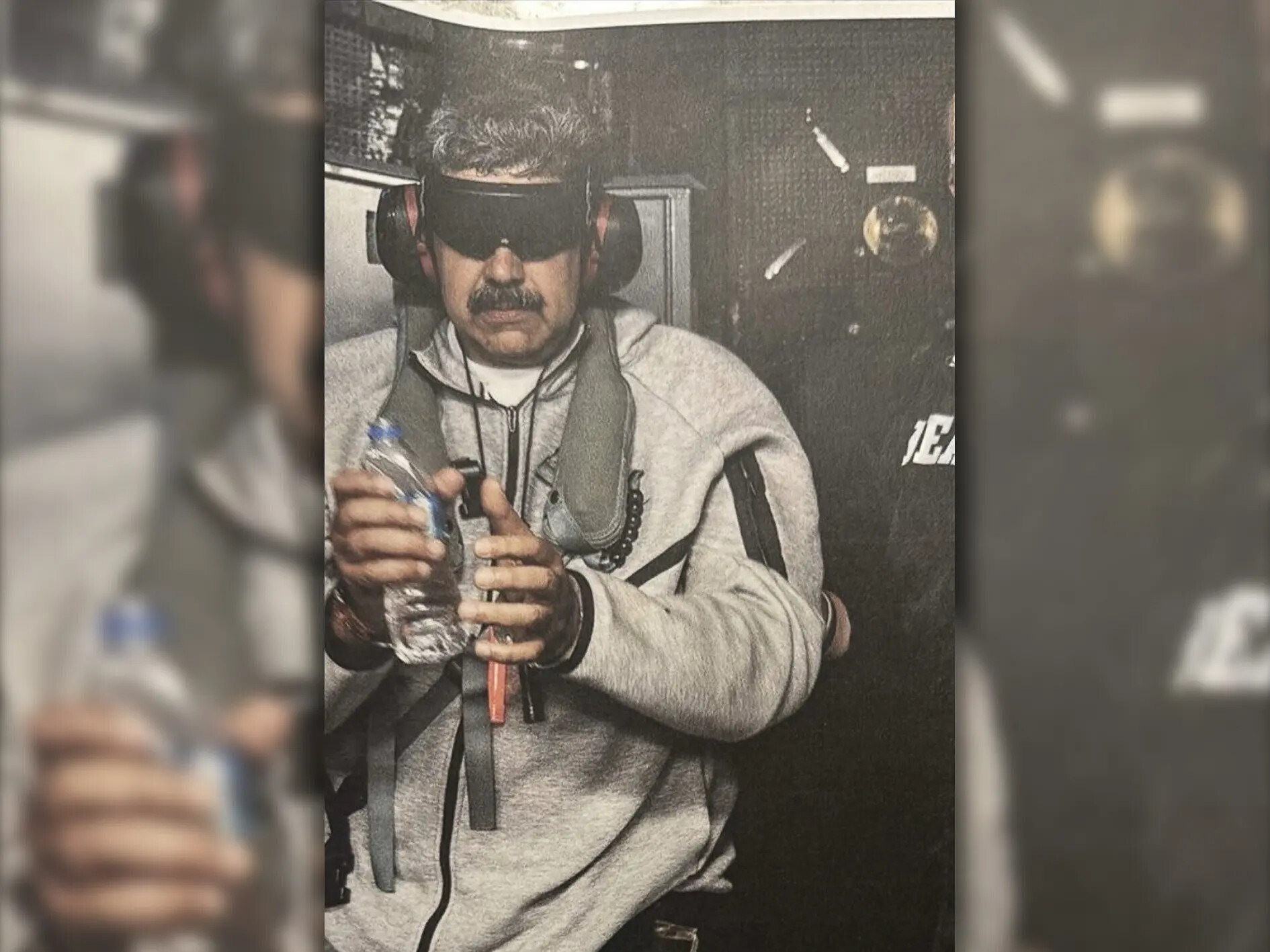 2026年1月3日、ベネズエラのマドゥロ大統領(中央)がニューヨークにあるアメリカ麻薬取締局の本部に連行された。(AFP/X Account of Rapid Response 47)