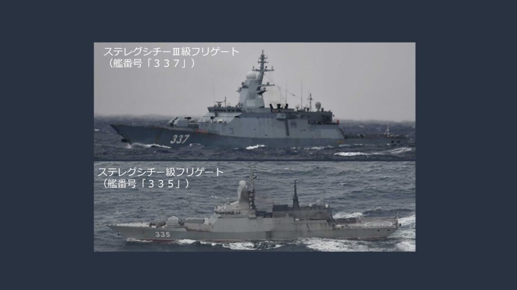 2月に入ると、北方での動きも確認された。2月1日にはステレグシチーⅢ級フリゲート(艦番号「337」)が龍飛崎(青森県)西方から津軽海峡を東進し太平洋へ抜け、逆に2月4日には別のステレグシチー級フリゲート(艦番号「335」)が尻屋崎(青森県)北東から津軽海峡を西進し日本海へ入った。これらは個艦による移動であり、配備の交代や単独訓練の一環と見られる。