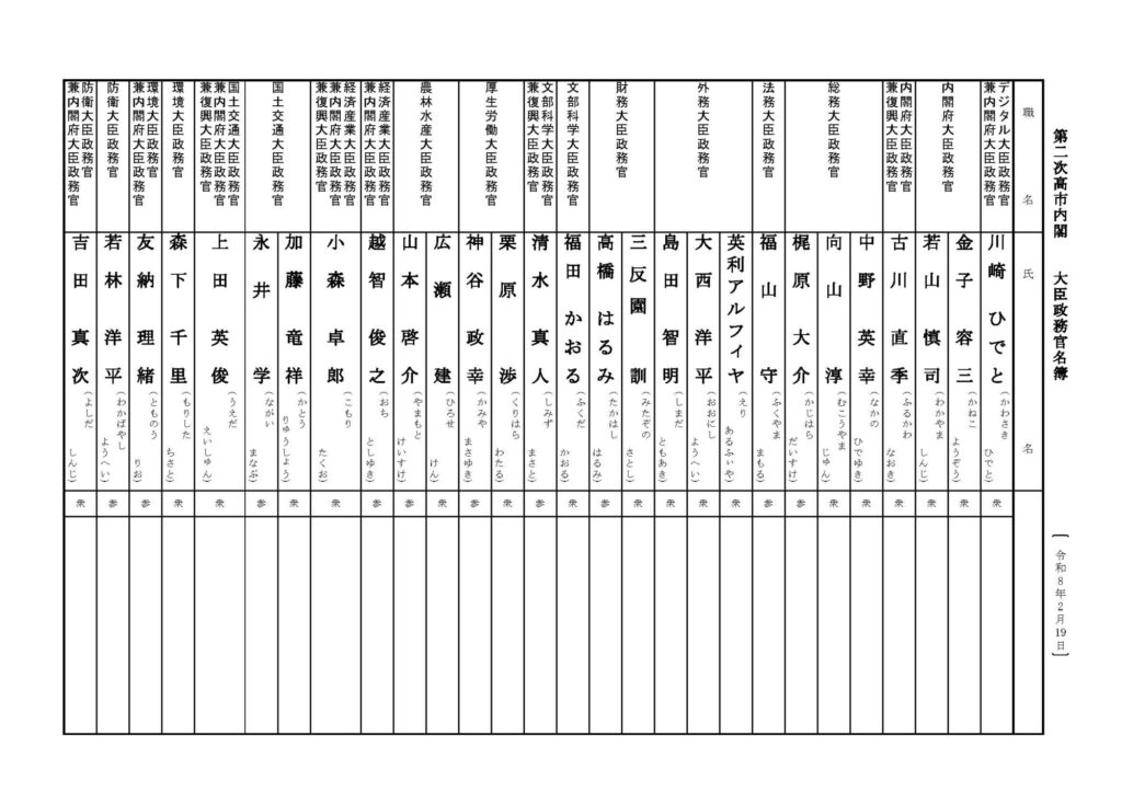 令和8年2月18日に発足した第2次高市内閣において、翌2月19日に大臣政務官の任命が決定した。