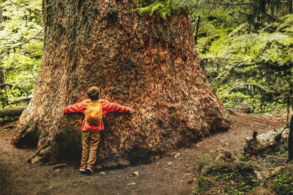 ツリーハギングとは、その名の通り、一定時間、木を抱きしめたり触れたりする実践です。両手のひらで樹皮に触れ続けたり、幹にもたれかかったり、腕を回して抱きついたりします。ツリーハギングは、心身の健康を改善することが示されている「森林浴」の一要素でもあります。