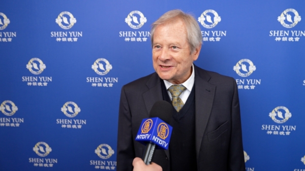 クロード・ラミー教授は神韻公演を観劇し「公演は素晴らしいの一言です! 本当に最高でした! オーケストラも指揮者も非常に見事でした」と絶賛した(新唐人テレビ)