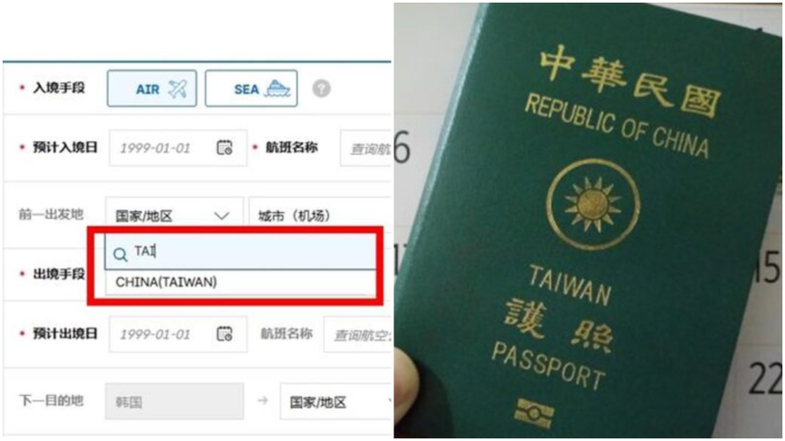 昨年から運用されている韓国の電子入国申告書で、中国共産党(中共)の方式を踏襲し、「台湾」の前に「中国」と記載される状況が続いている。これに対し中華民国(台湾)側は抗議を重ねてきたが、改善が見られないことから、関係当局が対応に踏み切った。台湾が発行する外僑居留証などの公的書類では、従来の「韓国」の表記を「南韓」に改めている。