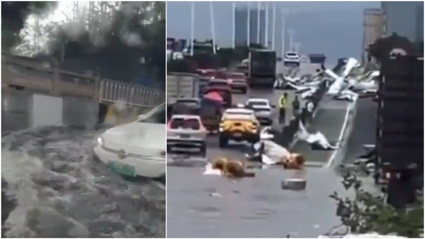 広州で猛烈な豪雨 高架橋がたちまち川のように