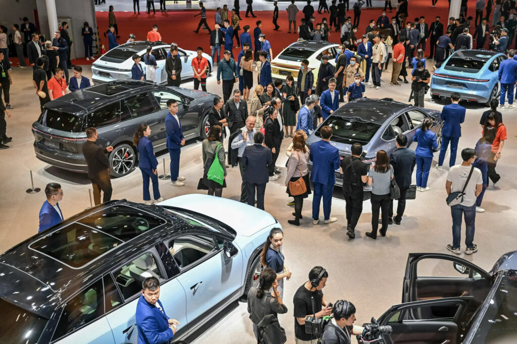 2023年4月19日、上海で開催された第20回上海国際自動車産業展に人々が訪れた。国家規制当局は、自動車などの分野における「退化型」競争と「無秩序な価格競争」に対処することを約束している(Hector Retamal/AFP via Getty Images)