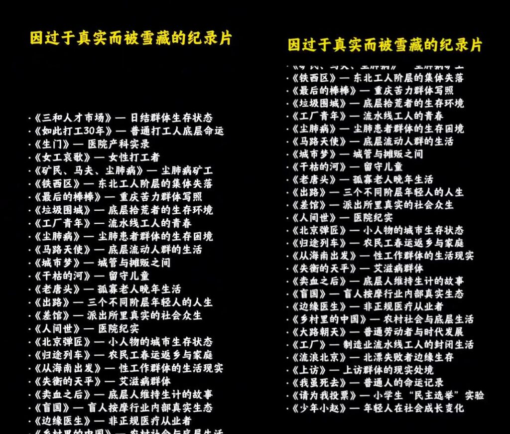 ネット上に出回った公開が制限されたドキュメンタリー映画32本の一覧 (スクリーンショット)