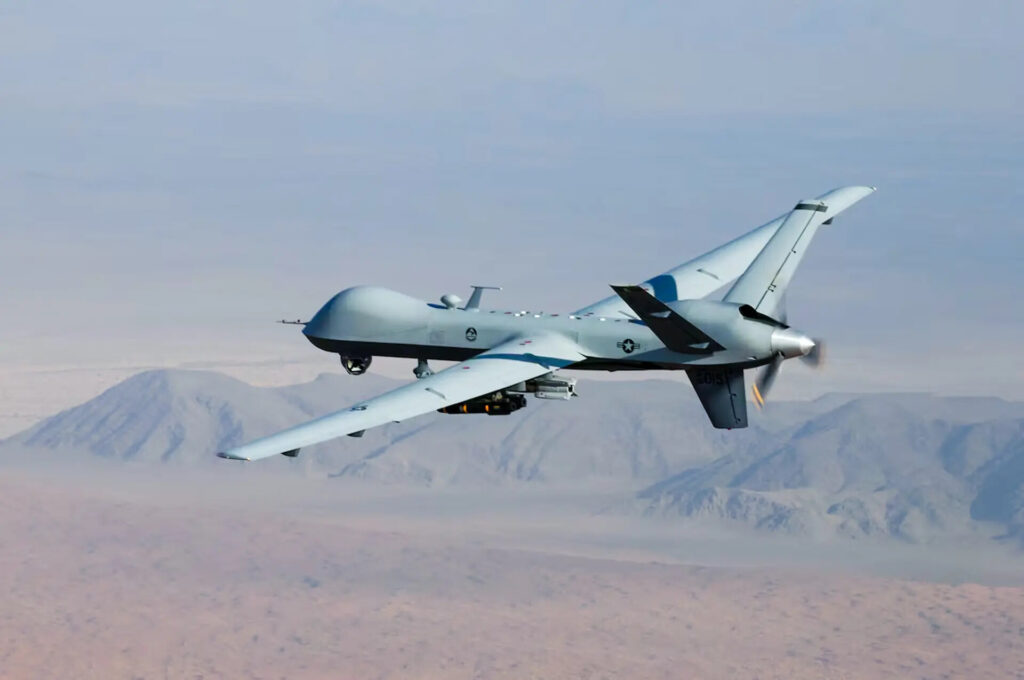 主に情報収集、二次的に標的設定に使用されるMQ-9リーパーが、この資料画像ではアフガニスタン南部上空で戦闘任務を遂行している(Lt. Col. Leslie Pratt, Senior Airman Christian Clausen/U.S. Air Force)