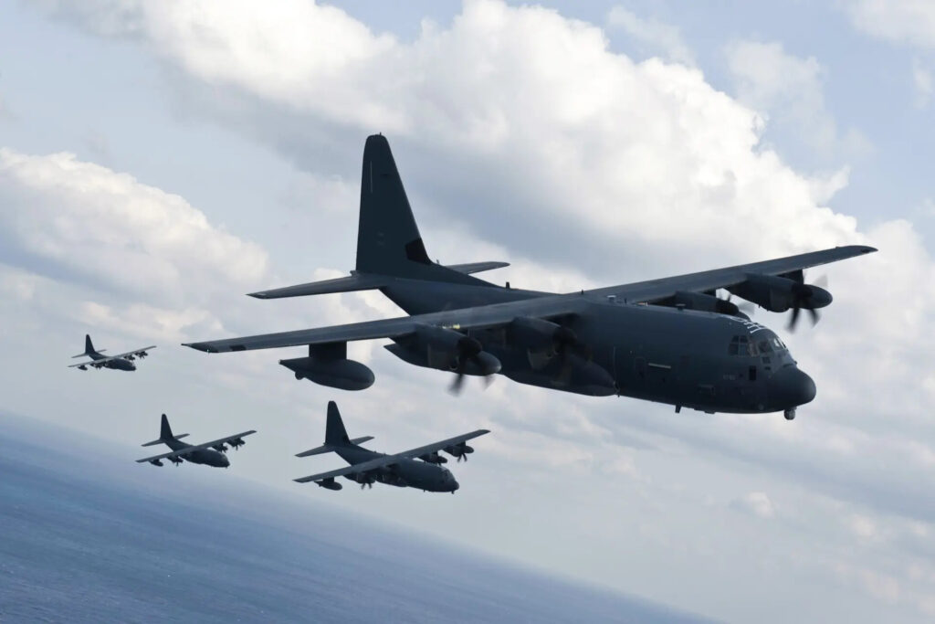 2016年2月17日、日本の沖縄沖で編隊飛行するMC-130JコマンドーII( Senior Airman Peter Reft/U.S. Air Force)