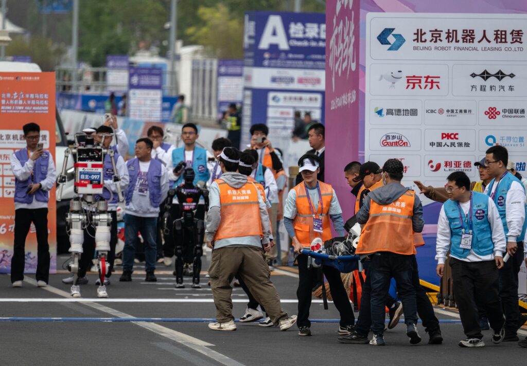 中国・北京市で19日、「2026北京亦荘(えきそう)人型ロボット・ハーフマラソン」が開幕した。人型ロボットによる同種の競技は過去2年間で3回目となる。競技中にロボットが停止し、担架で運び出される場面は常態化しつつあり、会場ではトラブル対応が前提となっている。
