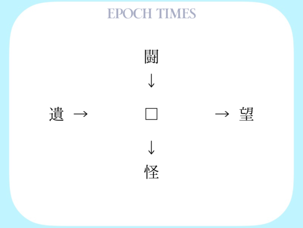 適当な漢字を入れることによって、「"闘□、□望、遺□、□怪"」という4つの二字熟語ができます。